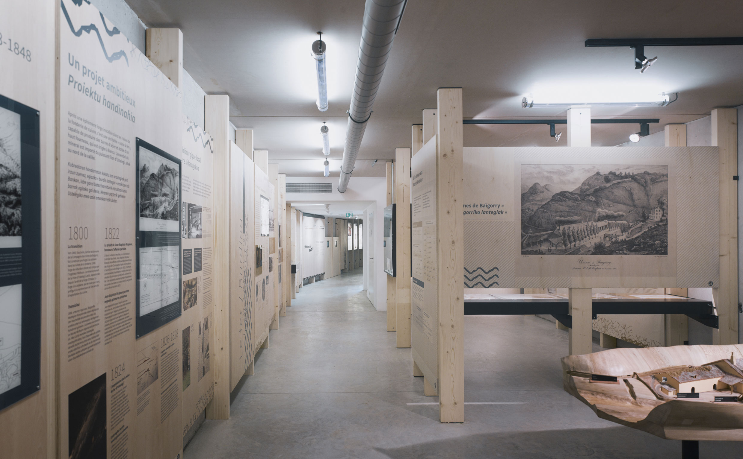 Le village de Banca est au Pays Basque, dans la vallée des Aldudes. La création d’un centre d’interprétation pour le village est l’occasion d’attirer les visiteurs en valorisant l’histoire des mines locales. Ce projet culturel comprend aussi la création d’un café, lieu de convivialité attendu par les habitants, le dernier bar du village ayant fermé il y a quelques années. Comment amener une intervention contemporaine dans un petit village basque, où l’identité architecturale est très forte ? En réinterprétant le paysage.