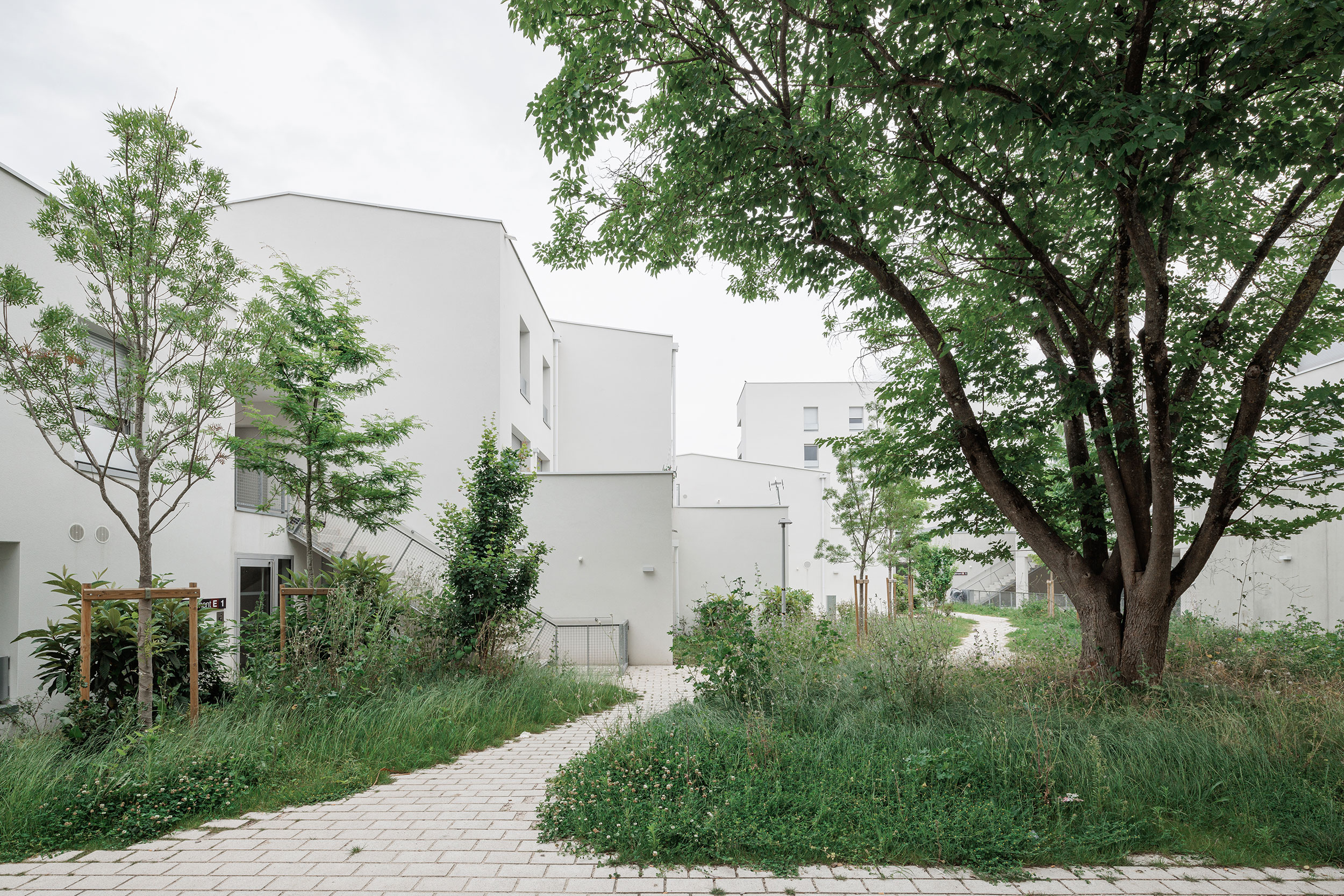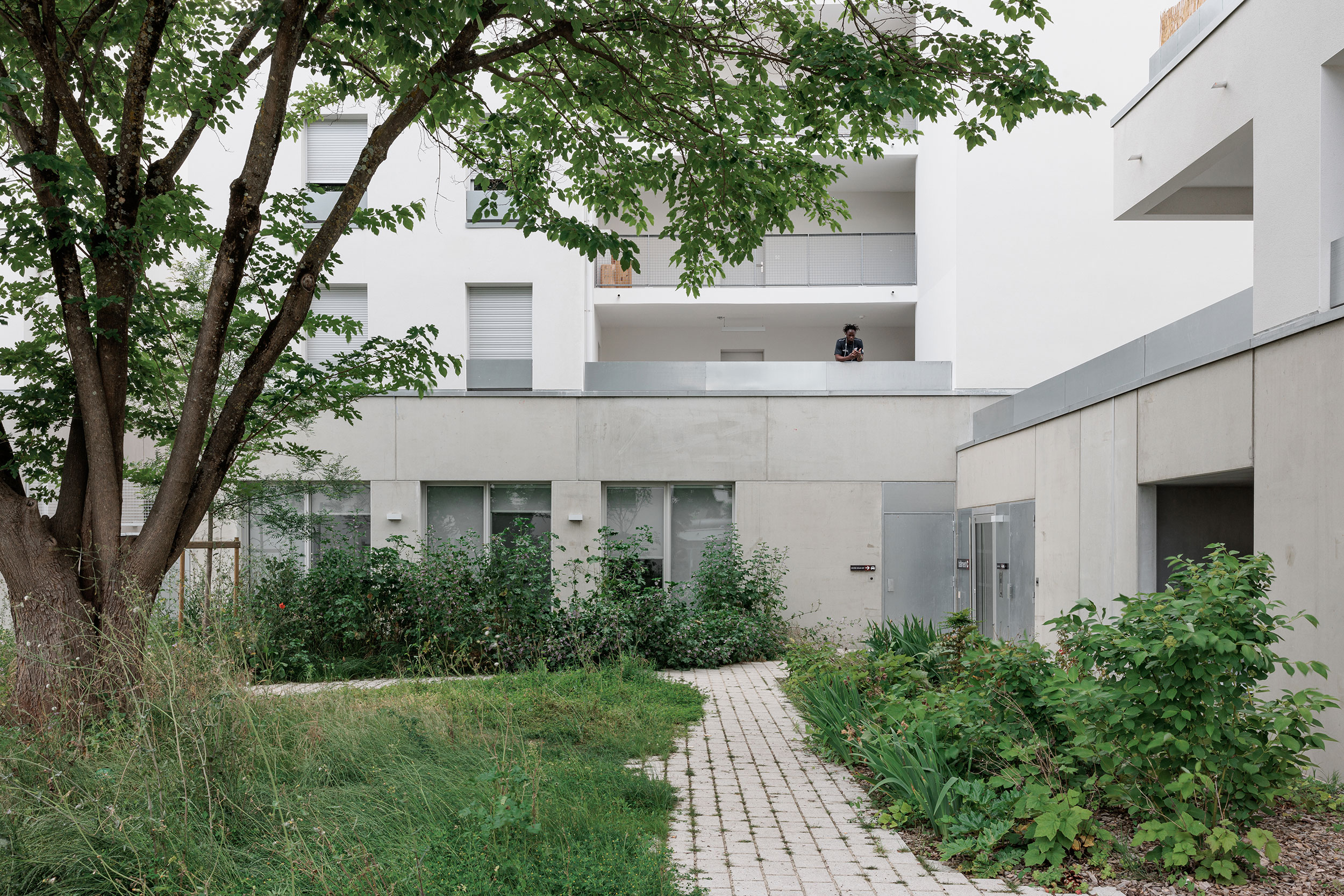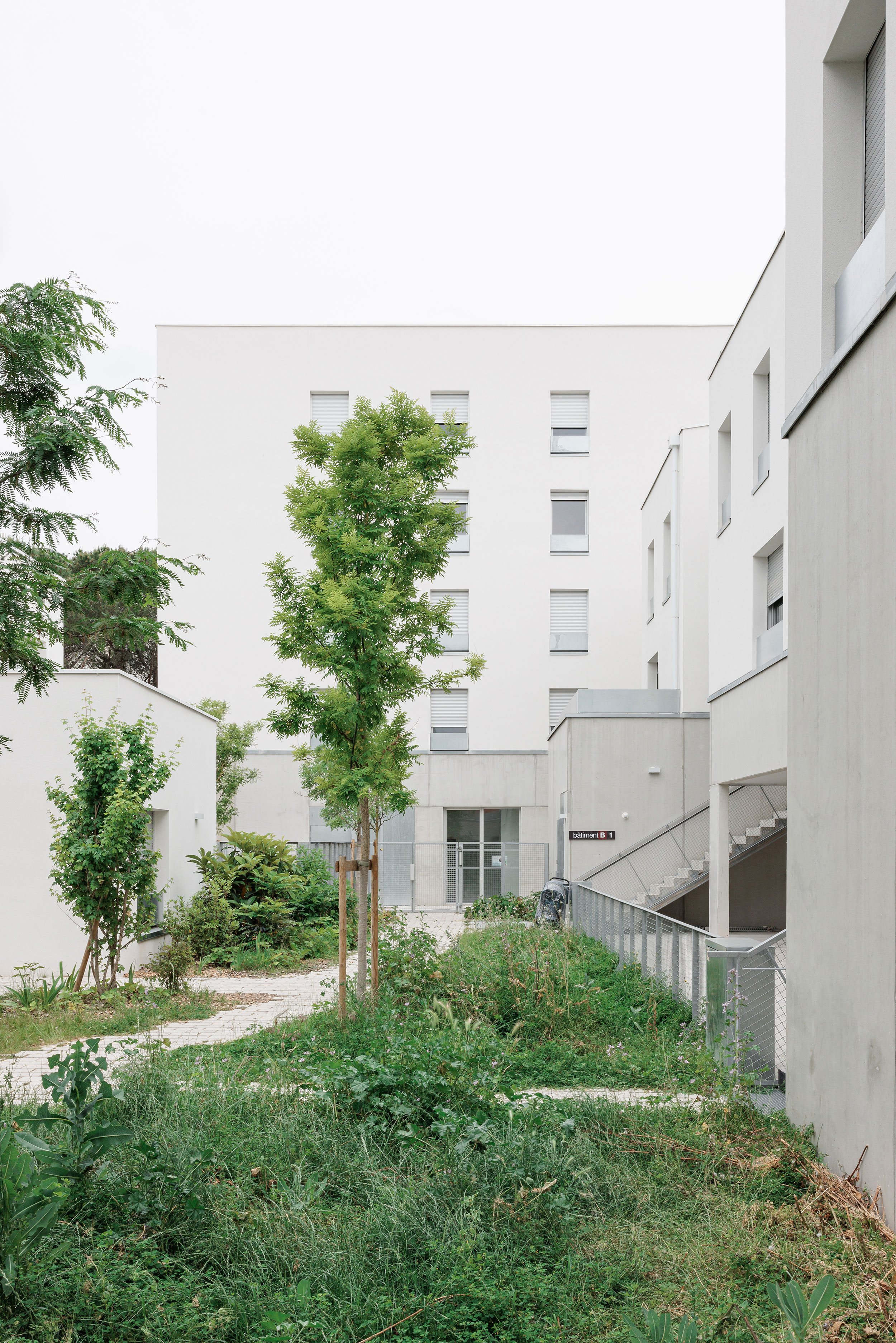 L’esprit du lieu existant, avec son alignement de pins parasols, a donné naissance à ce projet de Cité Jardin. Les volumes, de plus grande hauteur aux extrémités, délimitent les contours de l’îlot tandis que le cœur est traversé par la masse végétale. Les logements sont disposés autour, de manière à profiter des meilleures conditions d’ensoleillement, de calme, et d’espaces extérieurs rejoignant ainsi notre proposition : Habiter un paysage arboré. Le socle en béton préfabriqué abrite plusieurs équipements dont un espace sénior, une crèche, un local associatif et des bureaux.
