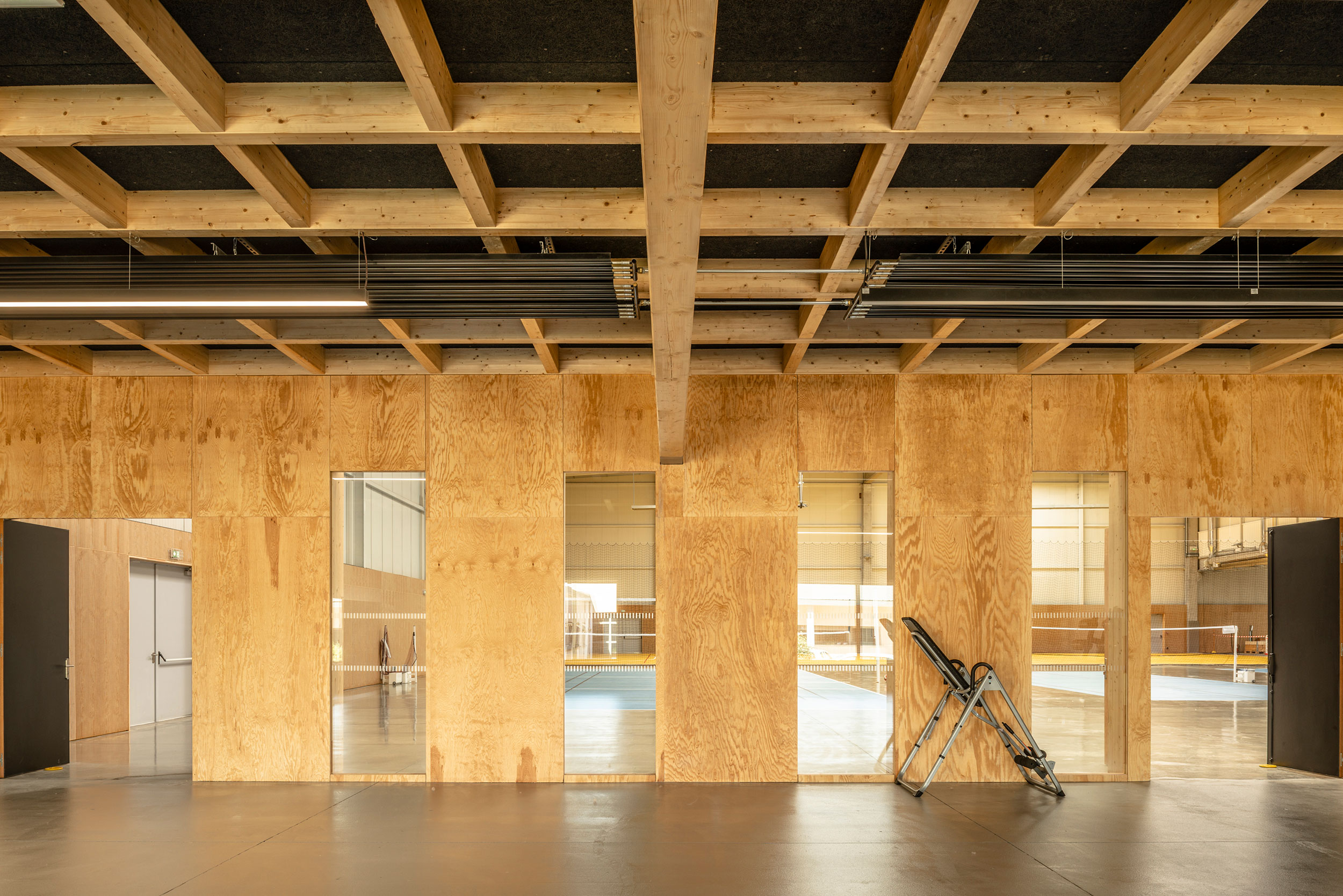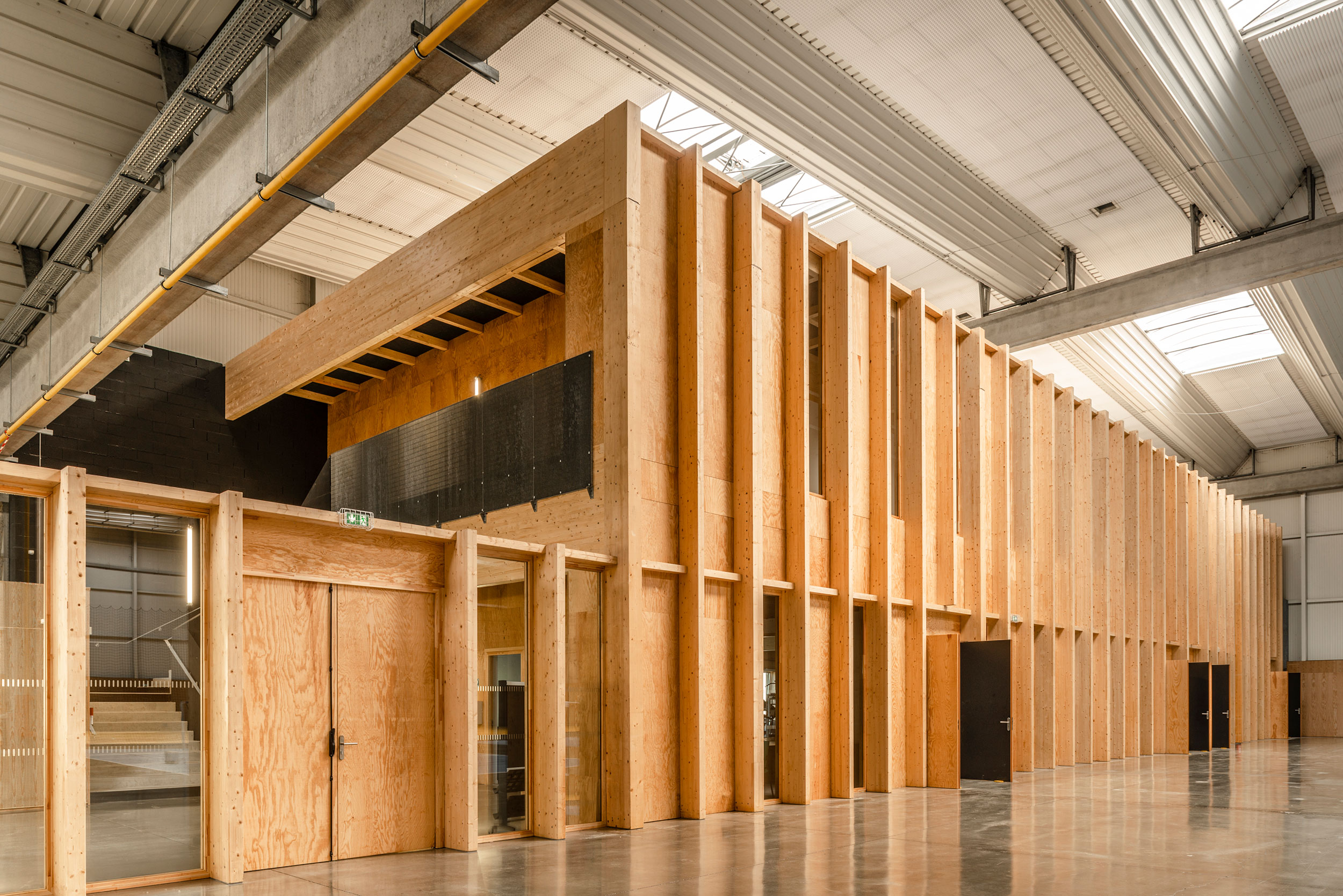 Le projet consiste à créer un complexe instruction et multisport dans le bâtiment 0063 ancien entrepôt aujourd’hui inoccupé. Ce projet se caractérise par plusieurs enjeux : • Transformer un bâtiment entrepôt en complexe multisport • Valoriser et adapter les volumes existant aux besoins des pratiques sportives • Améliorer le confort thermique, acoustique et visuel (lumière naturelle) • Créer un équipement fonctionnel et pérenne. Le projet comporte la réalisation de deux entités dans un même espace ; la zone sport dédiée à la pratique sportive et une zone instruction comportant cinq salles.