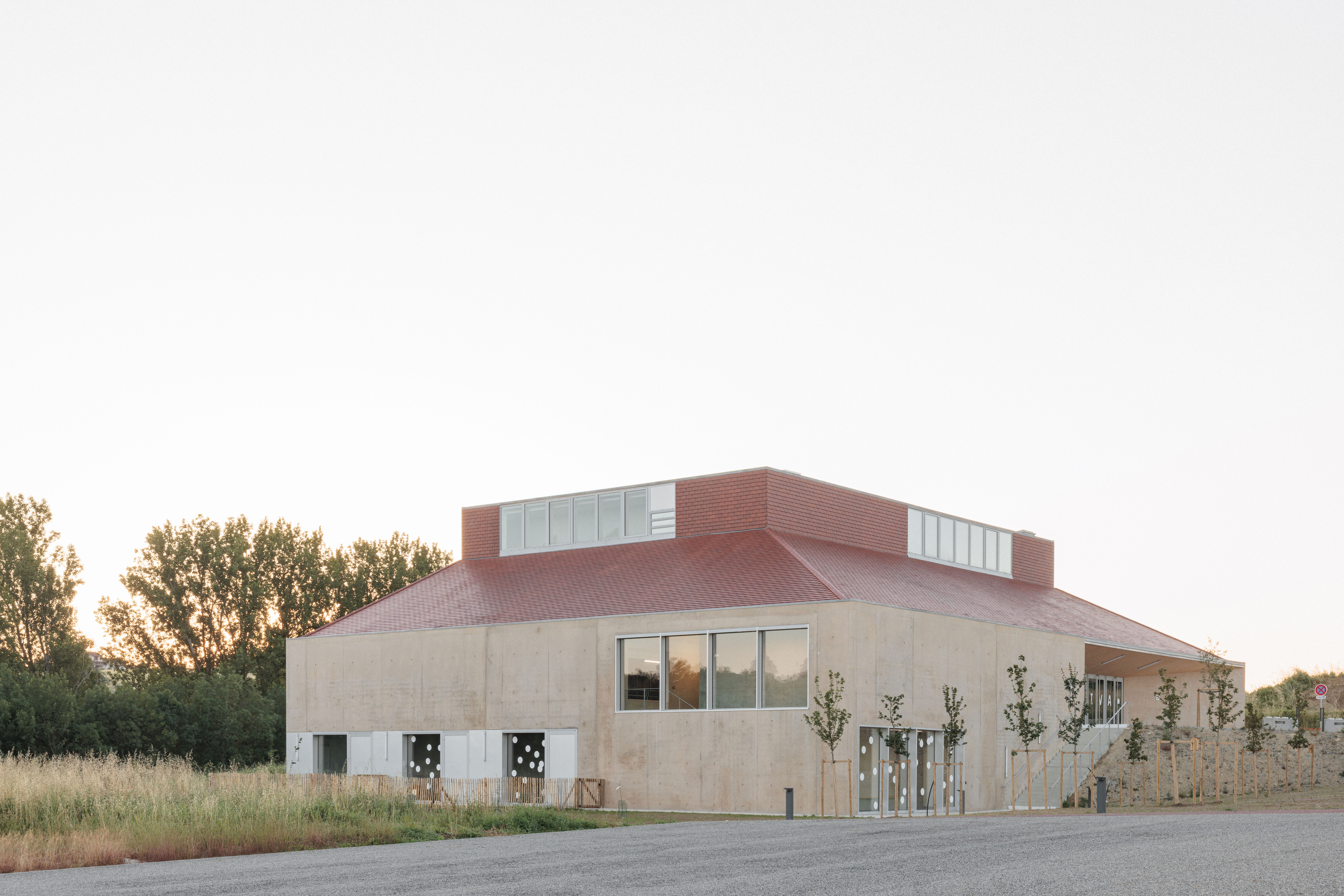 Le projet, tel une grande maison, incarne l'ambition de fournir un équipement moderne aux habitants de Venerque. Avec une construction compacte et un toit à quatre pentes, l'empreinte au sol est minimisée. La polyvalence est au cœur de cette réalisation, permettant à la commune, aux associations et aux citoyens de disposer d'un espace adapté pour divers événements et activités tout au long de l'année. L'agencement des différentes entités du programme est crucial pour assurer un équipement modulaire et adaptable, tant en termes de volume que de fonctionnalité. C'est la terre qui a guidé l'ensemble de notre conception. Elle a inspiré les ambiances, la matérialité et défini l’agencement des espaces. L'innovation réside ici dans la compréhension des savoir-faire ancestraux. Cette expertise a garanti le succès tant sur le plan architectural que social du projet. Ici, la terre est bien plus qu'un simple substrat : elle se métamorphose en un outil au service du lien social, se matérialisant en un bâtiment ouvert à tous.