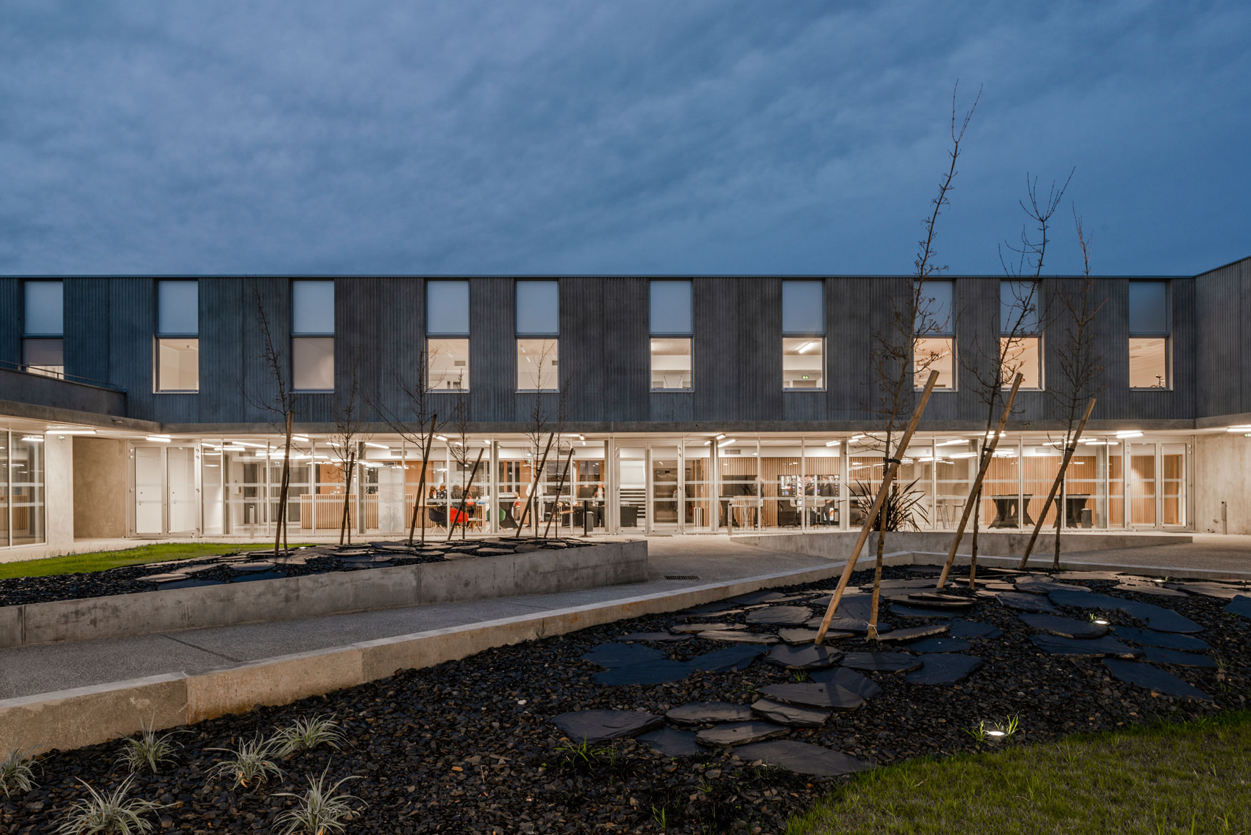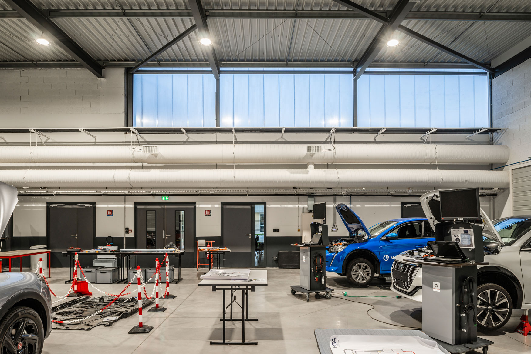 Le centre de formation est un lieu d’apprentissage confortable et fonctionnel pour l’utilisateur. Il propose un service de grande qualité à l’image des grandes marques automobiles avec lesquelles il collabore. Au delà de sa vocation technique, il incarne une dimension institutionnelle forte en proposant un haut niveau de service, d’accueil et d’apprentissage. LE projet s'organise autour d'un patio desservant l'ensemble des salles de formation et des ateliers. Les usager profitent ainsi d'un lieu d'échange pour de détendre et échanger ensemble.