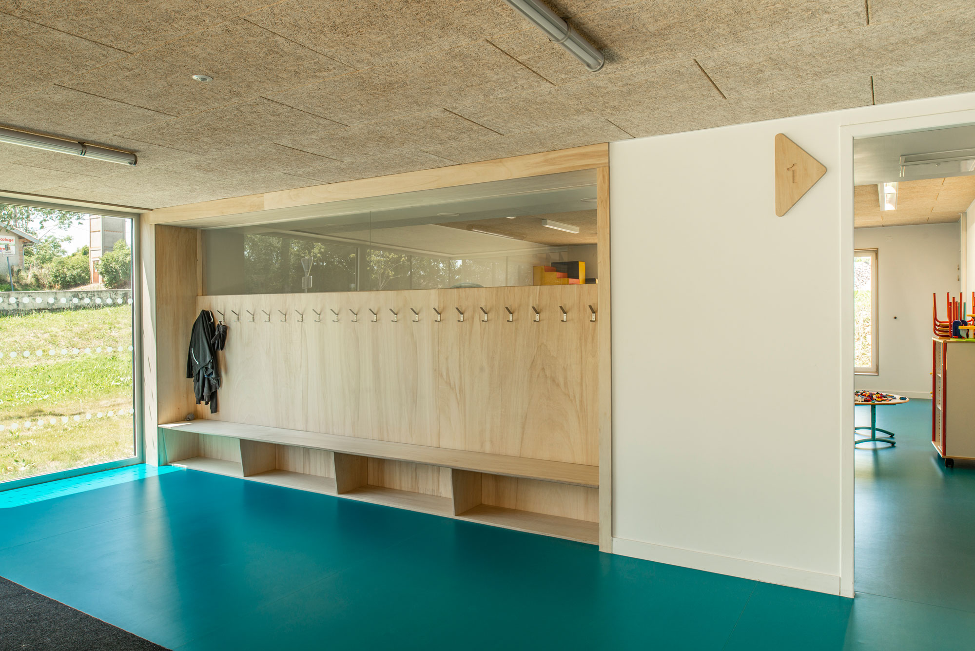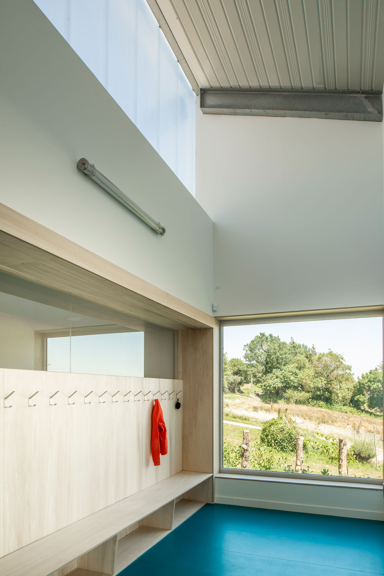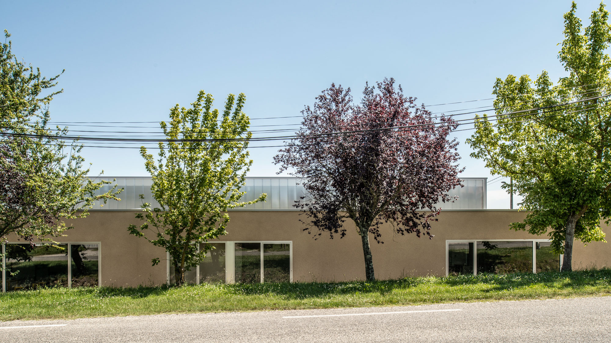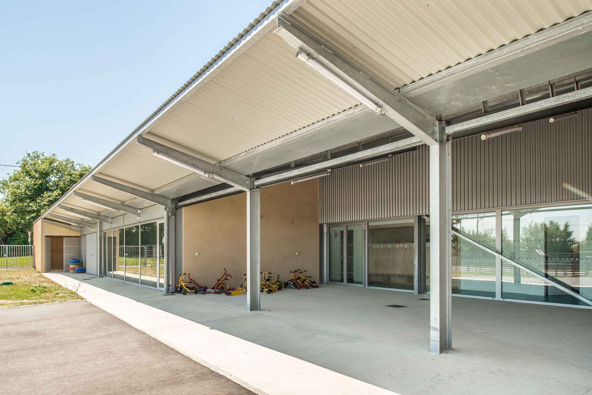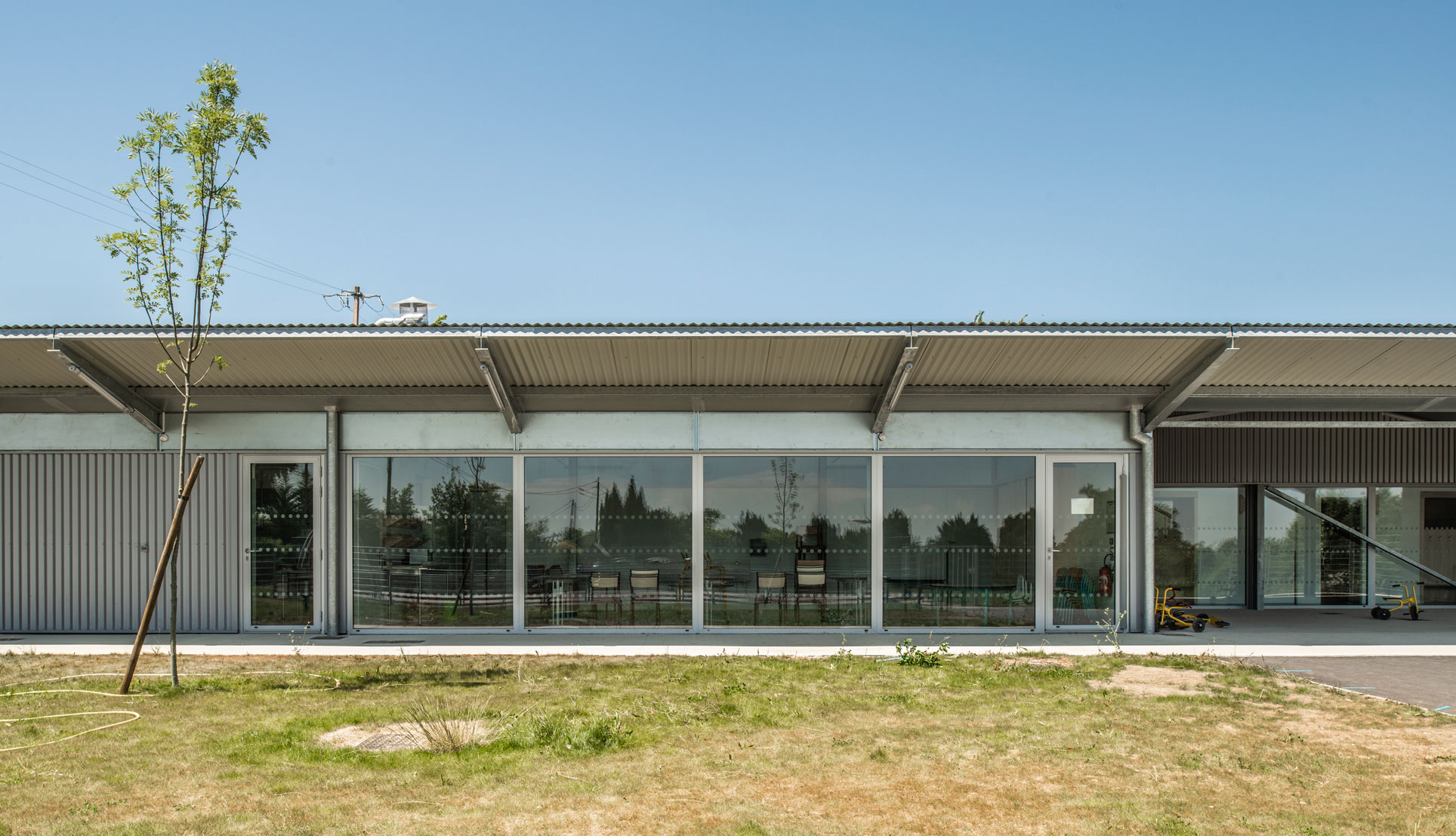 A l’échelle urbaine, le bâtiment est repérable et facile d’accès. Cette école élémentaire occupe une position urbaine stratégique, sa proximité avec le centre bourg est un privilège. Les enjeux du projet sont donc doubles : créer un lieu d’éducation neuf, fonctionnel et accueillant que ce soit pour les élèves, enseignants et autres utilisateurs mais également un équipement public durable à coûts maîtrisés et facile à entretenir. Le long d'une rue intérieure éclairée par un shed, l'école s'ouvre sur le paysage par de généreuses baies vitrées cadrant le paysage.