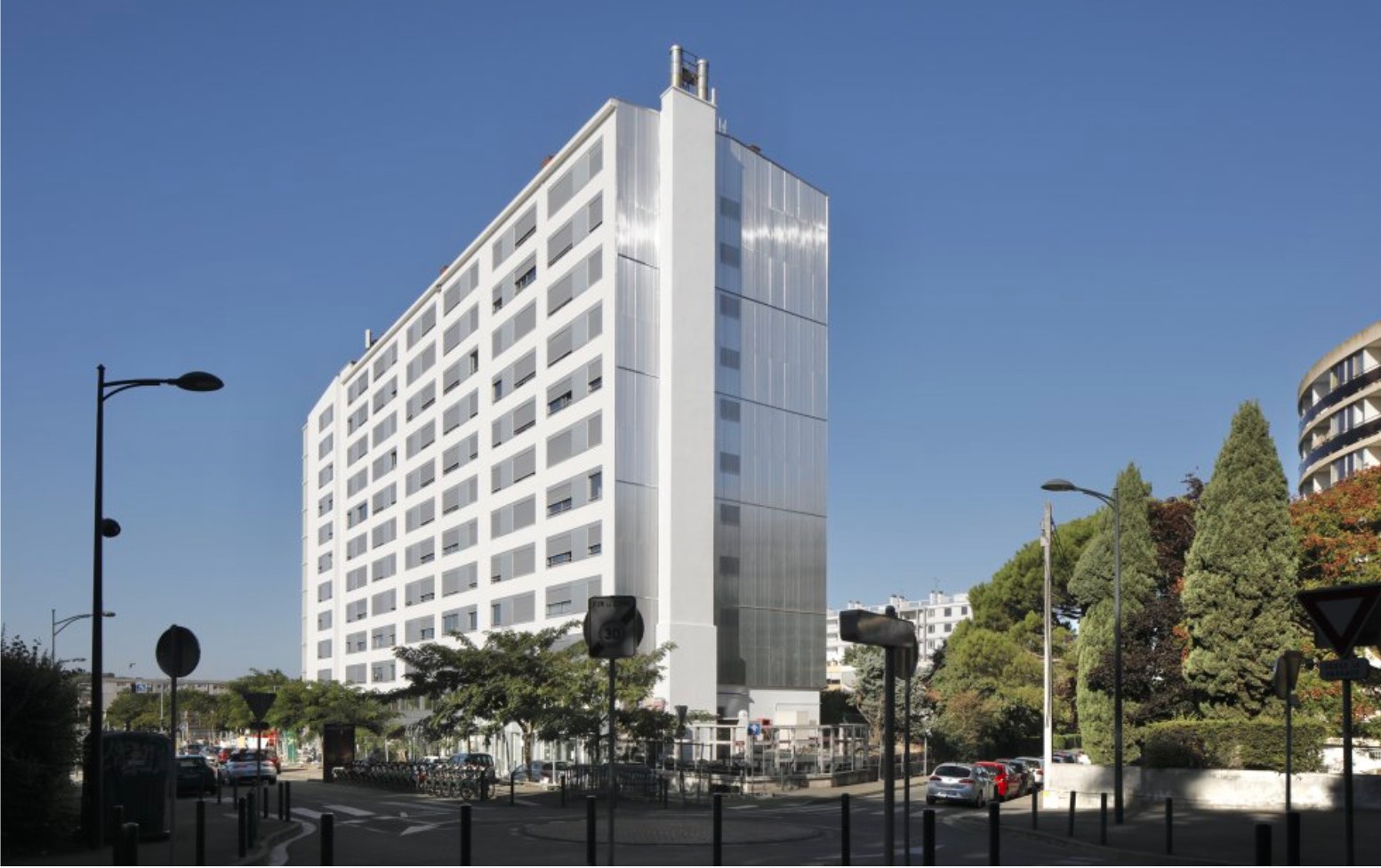 Les enjeux de ce projet consistent à distinguer et hiérarchiser la lecture urbaine des façades (une façade commerciale / des façades résidentielles) : Les surfaces totales des T2 sont cohérentes par rapport aux standards actuels mais déséquilibrées dans la répartition des surfaces. Nous avons maximisé les ouvertures afin de vivre dans le paysage et renouer le lien que peut entretenir le logement avec son environnement : • Inonder le logement de lumière • Donner à son salon les qualités d’une terrasse • Retrouver le plaisir d’habiter. Offrir un ensemble de dispositif et d’options de simplification de la distribution permet de rééquilibrer la ventilation des surfaces et d’accroître l’habitabilité du logement. Redimensionner le logement donne une circulation plus libre entre les espaces et ouvre les perspectives.