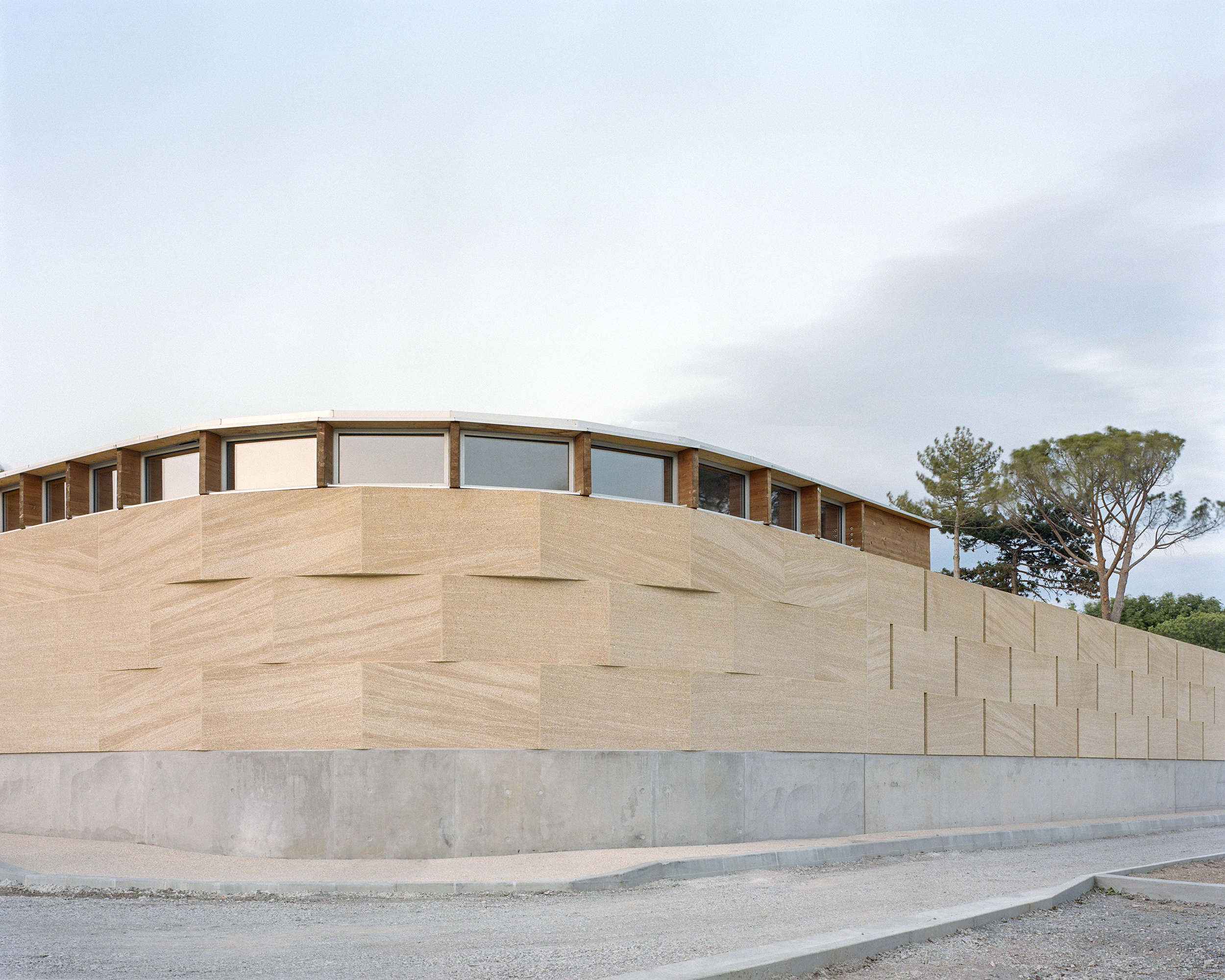 La piscine de Quissac s’inscrit dans le centre-bourg. Conçue telle un écrin en pierre de taille, elle protège les bassins de son environnement urbain. La pierre accompagne le baigneur dans son parcours, depuis l’entrée jusqu’aux plages. Une charpente bois constituée de poutres répétitives repose sur ces murs. Elle laisse entrer la lumière d’un côté et abrite les baigneurs côté plage. L’architecture sobre entre modernité et patrimoine utilise des matériaux locaux comme la pierre de Vers issue des carrières locales et le bois. La nouvelle piscine deviendra un nouveau repère architectural au cœur de Quissac. Le projet privilégie les énergies renouvelables, ce qui permet de maitriser la consommation d’énergie et réduire les coûts d’exploitation et de maintenance.