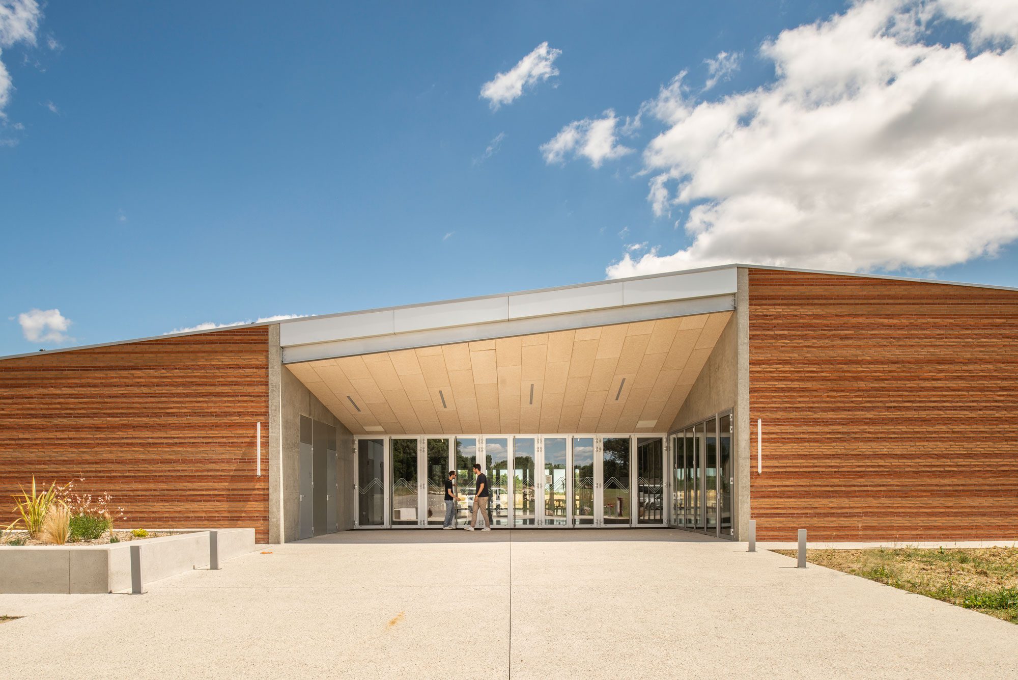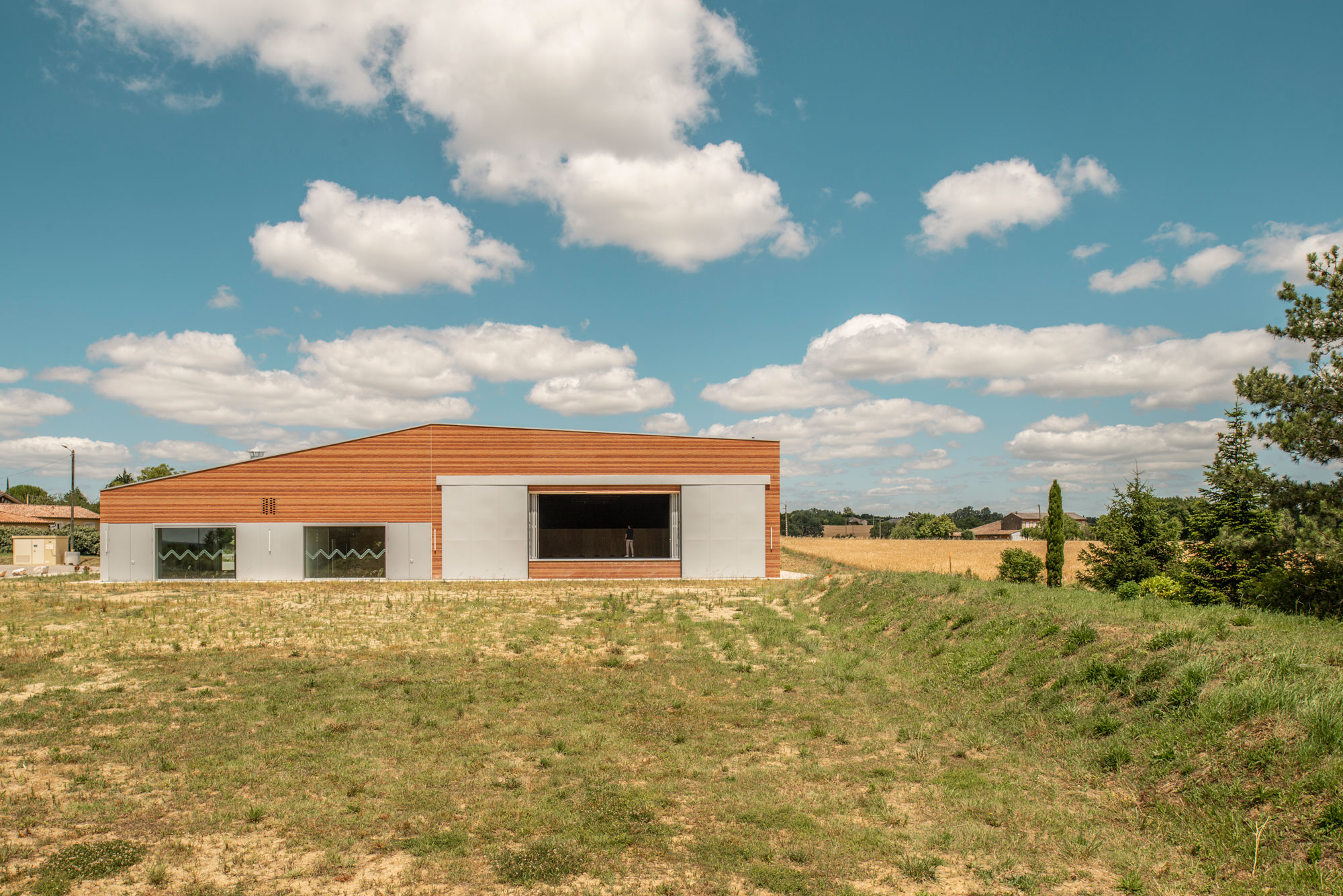 Le projet se présente alors sous la forme d’un volume simple dont les dimensions répondent aux besoins de chaque entité programmatique. Son écriture sobre répond au contexte en proposant une façade terre cuite dont le calepinage en strates horizontales fait référence aux longères toulousaines.