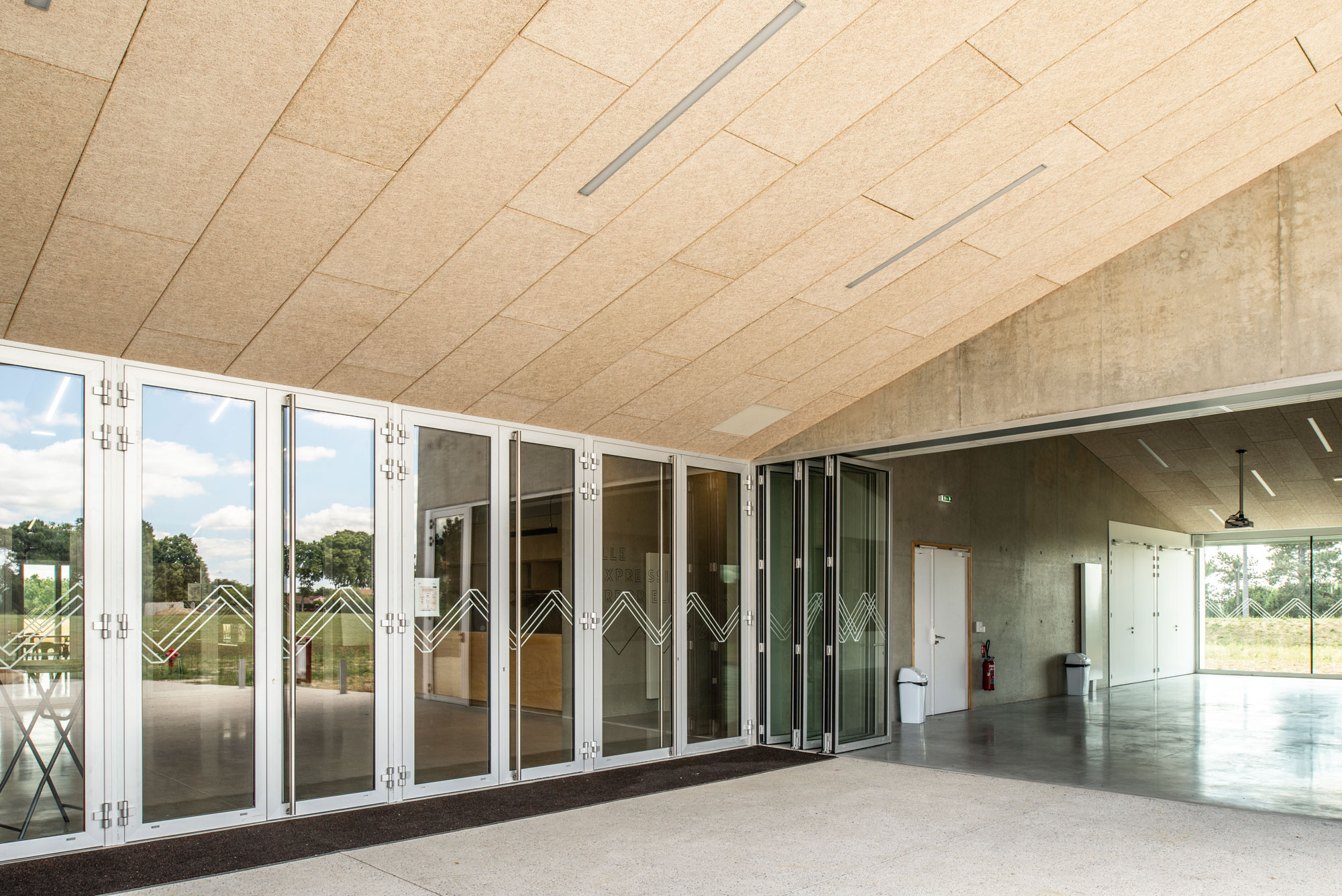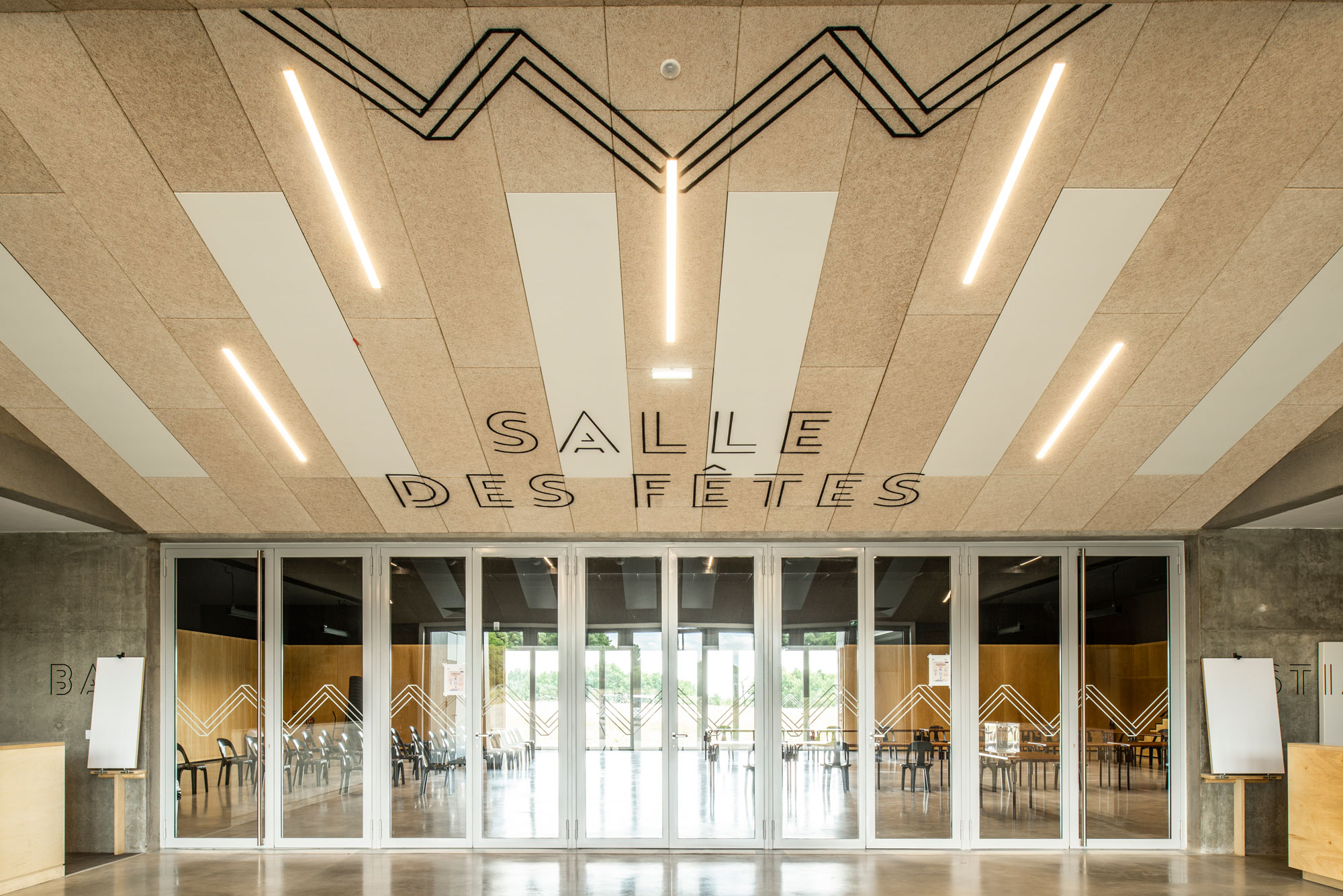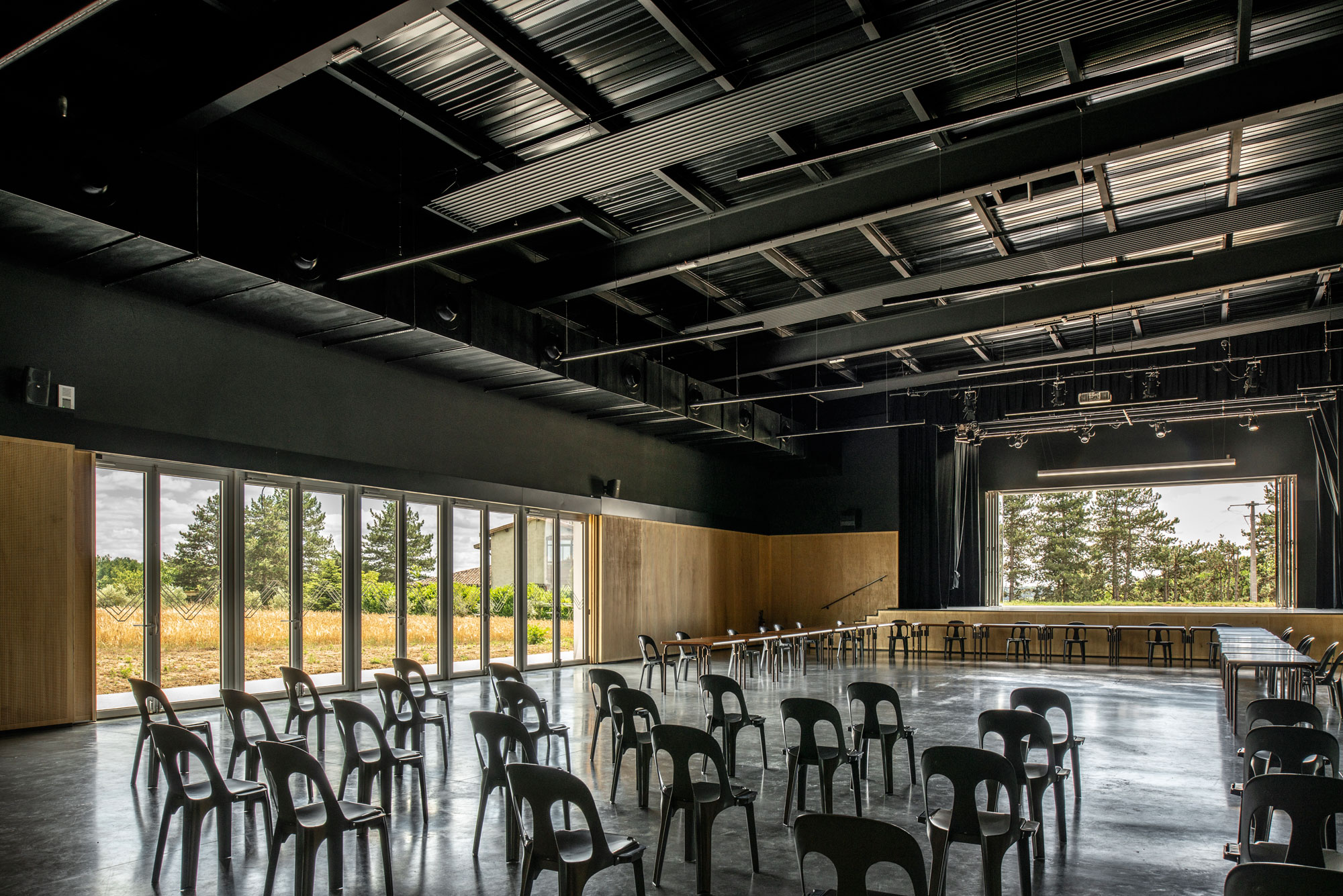 La salle polyvalente s’ouvre entièrement sur le parvis pour doubler sa surface, la salle de spectacle possède une scène entièrement ouverte sur l’extérieur permettant la réalisation de spectacles et évènements intra et extra-muros.