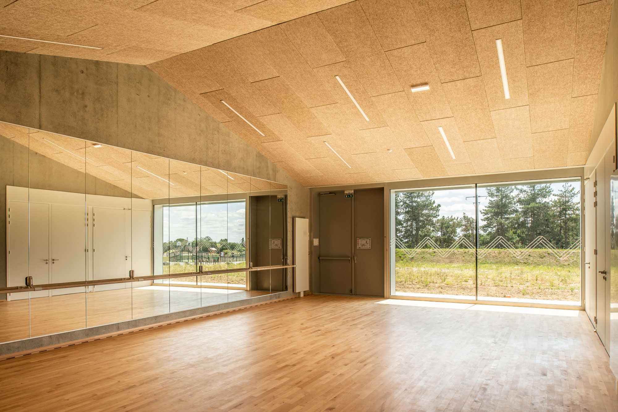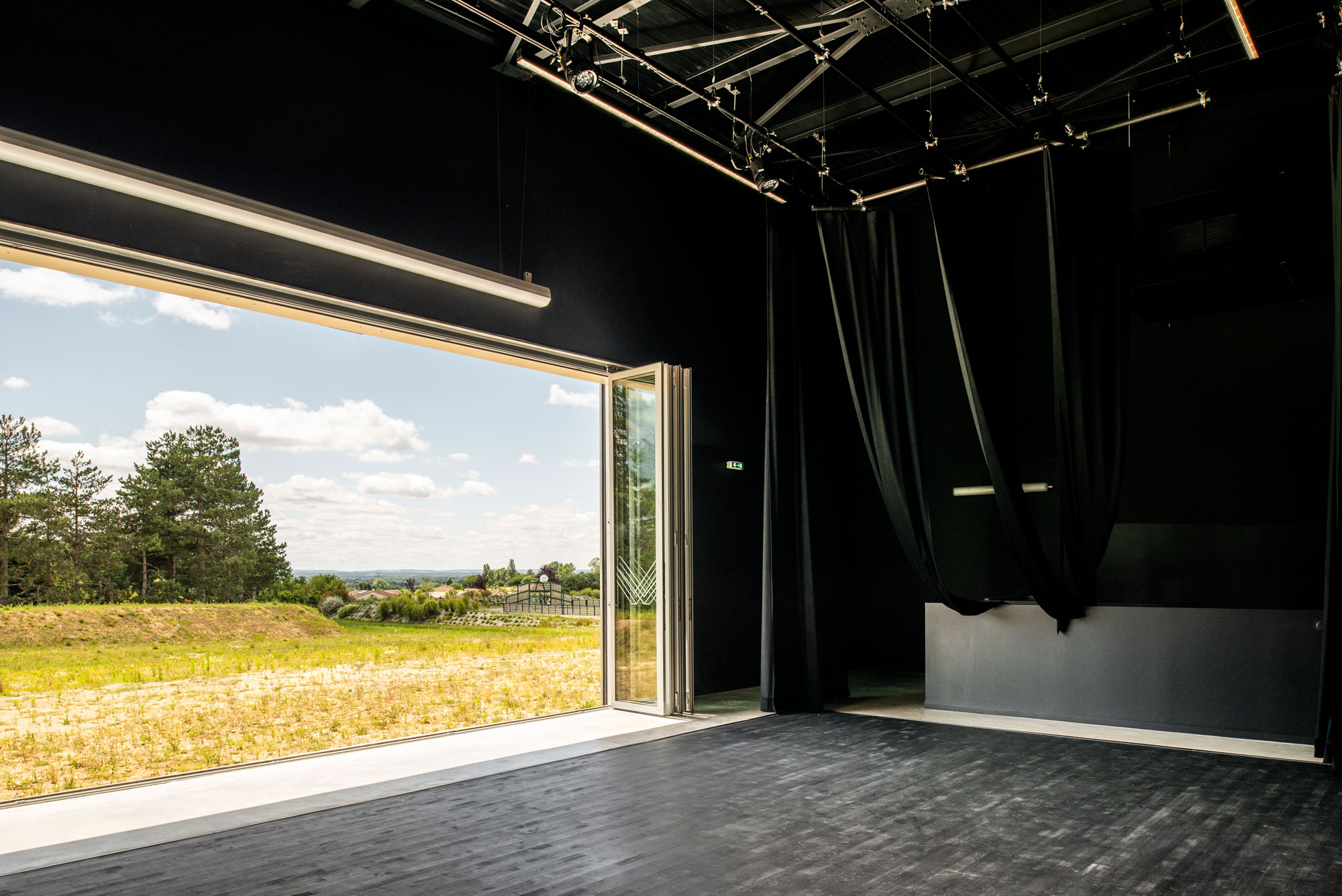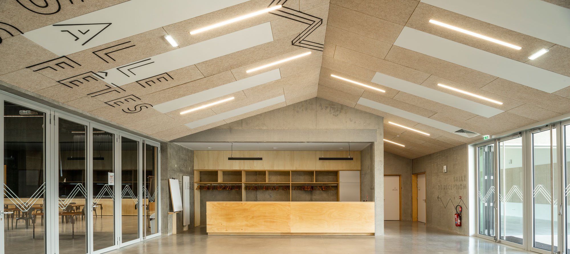 La salle polyvalente s’ouvre entièrement sur le parvis pour doubler sa surface, la salle de spectacle possède une scène entièrement ouverte sur l’extérieur permettant la réalisation de spectacles et évènements intra et extra-muros.