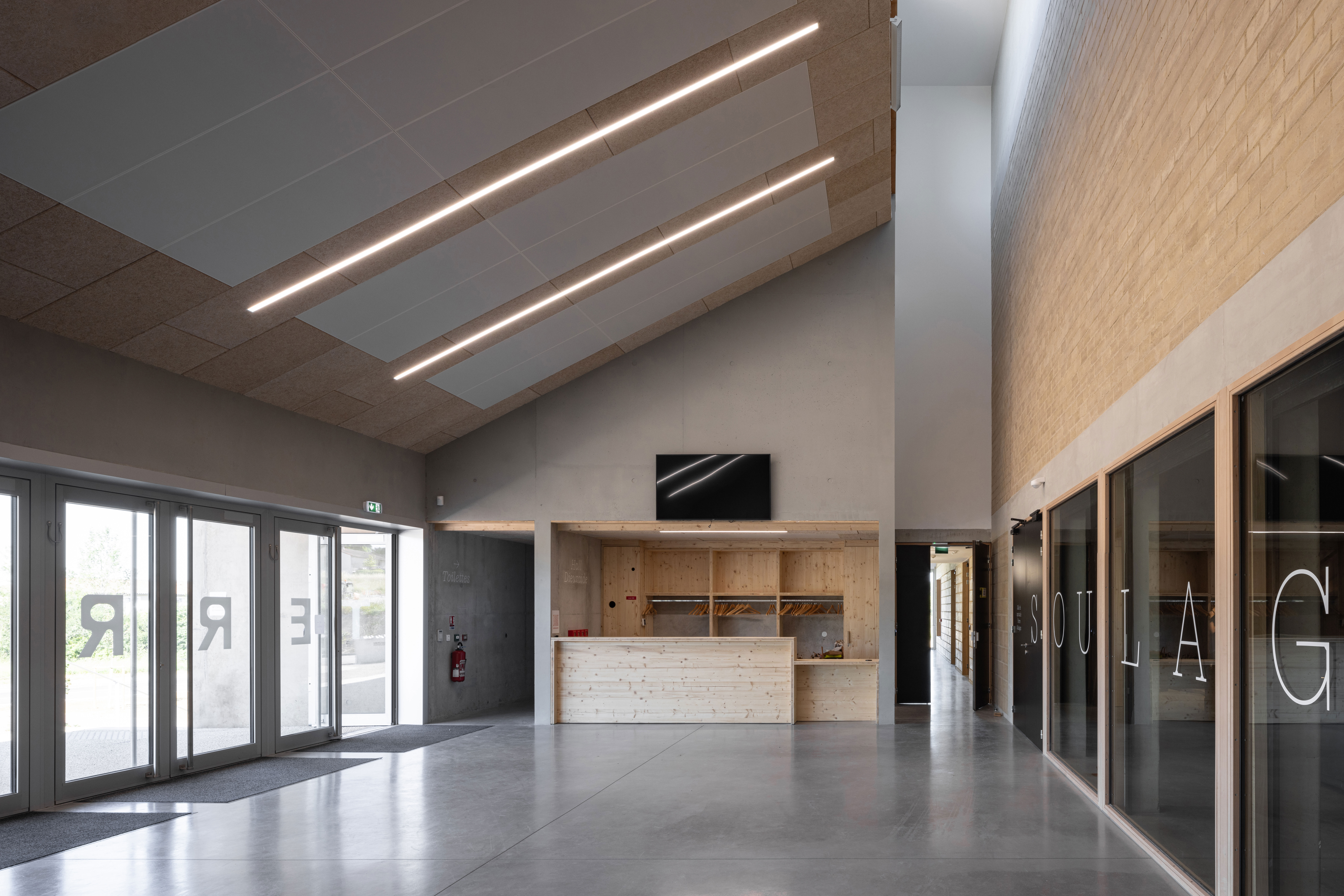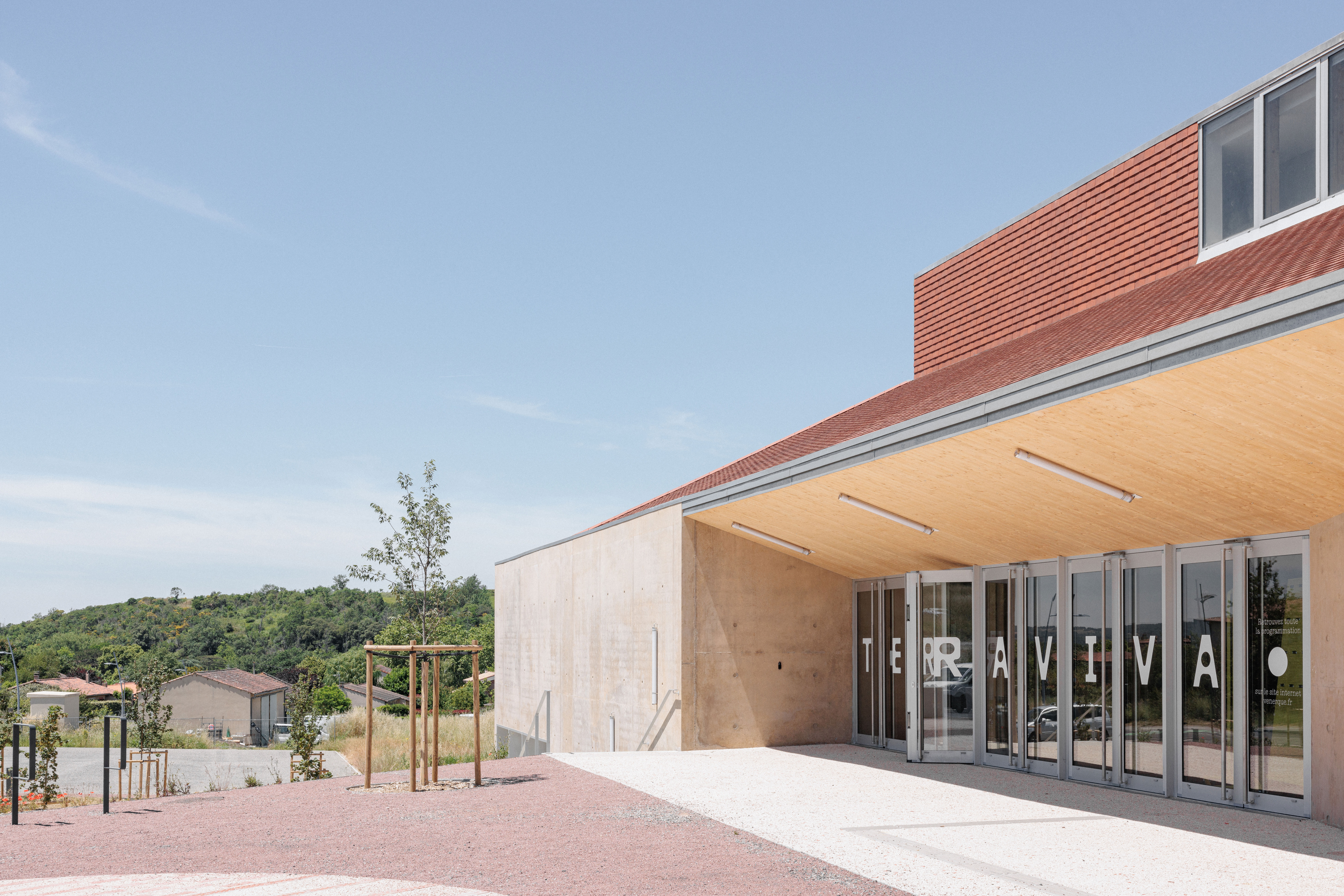 Le projet, tel une grande maison, incarne l'ambition de fournir un équipement moderne aux habitants de Venerque. Avec une construction compacte et un toit à quatre pentes, l'empreinte au sol est minimisée. La polyvalence est au cœur de cette réalisation, permettant à la commune, aux associations et aux citoyens de disposer d'un espace adapté pour divers événements et activités tout au long de l'année. L'agencement des différentes entités du programme est crucial pour assurer un équipement modulaire et adaptable, tant en termes de volume que de fonctionnalité. C'est la terre qui a guidé l'ensemble de notre conception. Elle a inspiré les ambiances, la matérialité et défini l’agencement des espaces. L'innovation réside ici dans la compréhension des savoir-faire ancestraux. Cette expertise a garanti le succès tant sur le plan architectural que social du projet. Ici, la terre est bien plus qu'un simple substrat : elle se métamorphose en un outil au service du lien social, se matérialisant en un bâtiment ouvert à tous.