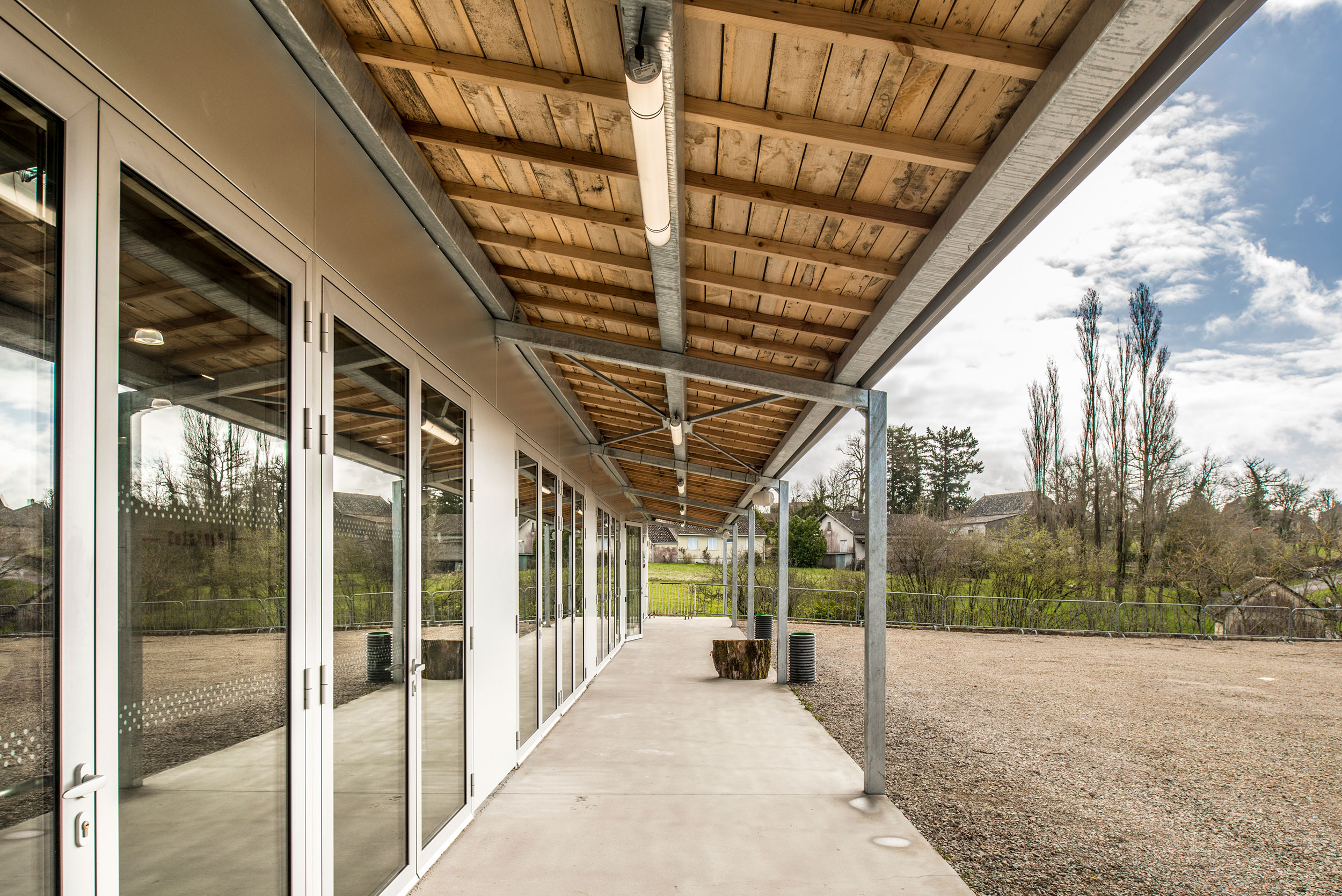Le site proposé se trouve au coeur du village de Sanvensa, à proximité immédiate de l’école primaire, de la place de l’église et du château. Semi enterrée, la salle des fêtes s’adosse à une place haute et s’ouvre sur le grand paysage par sa façade Sud. Principal équipement public du village, elle permet d’en lier les deux parties (coeur historique et partie du bourg en bord de route nationale). L’enjeu principal du projet sera d’accentuer ce rôle unificateur grâce à une réflexion urbaine élargie qui redonnera une place importante à cet équipement.